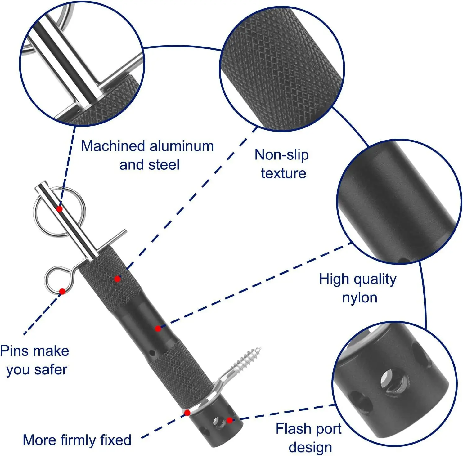 5. Simple Connection: The alarm device can be easily attached to a tree, post or frame through screw holes or zipper cutouts.