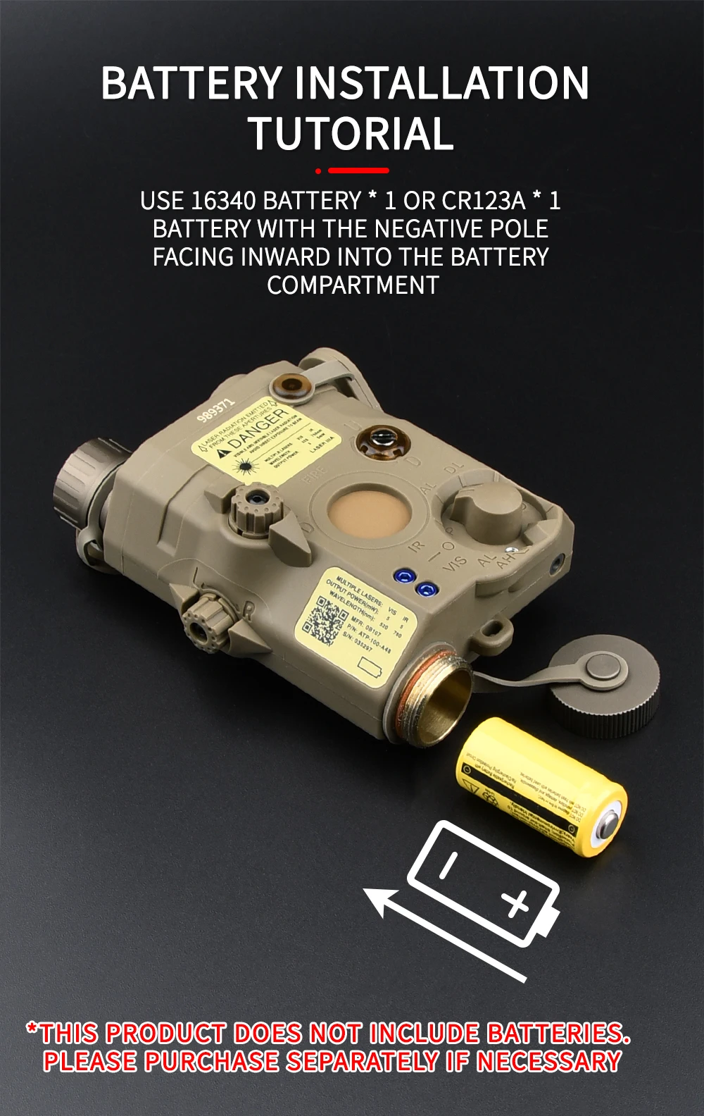 Applicable battery: 1*CR123A or 1*16340(NO iclude)